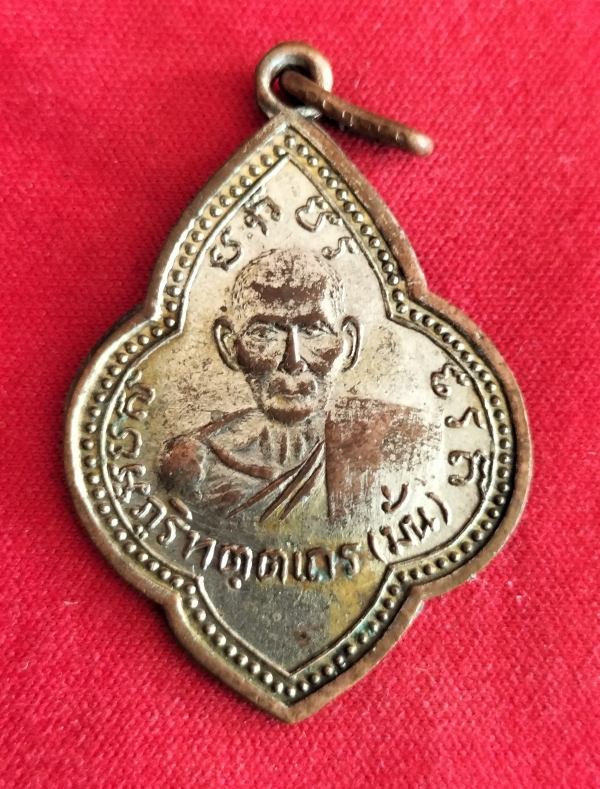 เหรียญดอกจิกด้านหน้าหลวงปู่มั่น ภูริทัตโต ด้านหลังหลวงปู่เสาร์ กันตสีโล พิมพ์หน้าแก่หลังสายฝน ปี 2493 ....เหรียญรุ่นนี้ประวัติการสร้างเพื่อเป็นที่ระลึกในงานถวายพระเพลิงศพหลวงปู่มั่น ภูริทัตโต ณ วัดป่าสุทธาวาส อ.เมือง จ.สกลนคร โดยมีคณาจารยสายกรรมฐานร่วมอธิษฐานจิตได้แก่ หลวงปู่สิงห์ ขันตยาคโม,หลวงปู่ดุลย์ อตุโล,เจ้าคุณธรรมเจดีย์ (จูม พันธุโล),ท่านพ่อลี ธัมมธโร, หลวงปู่ฝั้น อาจาโร, หลวงปู่ขาว อนาลโย,หลวงปู่ชอบ ฐานสโม,หลวงปู่ตื้อ อจลธัมโม,หลวงปู่เทสก์ เทสรังสี,หลวงปู่กงมา จิรปุญโญ พระอาจารย์วันอุตตโม ..ฯลฯ ...(เอาเป็นว่าครบทุกองค์)เพื่อแจกเป็นที่ระลึกกับผู้ร่วมบริจาคทุนทรัพย์และวัตถุทรัพย์ในงานถวายพระเพลิงหลวงปู่มั่น ภูริทัตโต มีเนื้อเดียว คือ เหรียญทองแดงกะไหล่ทอง,ทองแดงกะไหล่เงิน,ทองแดงผิวไฟ .... ..."เหรียญนี้เนื้อทองแดงกะไหล่เงิน ห่วงเชื่อมเดิมๆ สวยเดิมๆ".. |